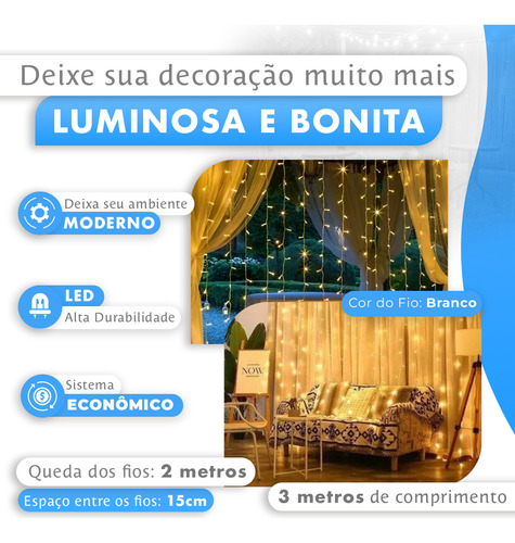 1x Cortina 300 Leds 3×2 Metros Festa Casamento Eventos Natal