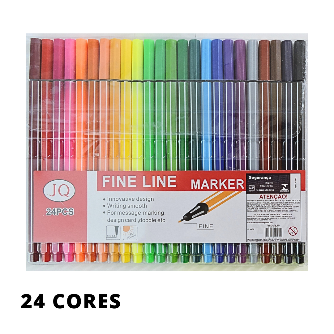 Kit 24 Canetas Cores Fine Line Ponta Fina 0.4mm 1ª Linha Coloridas