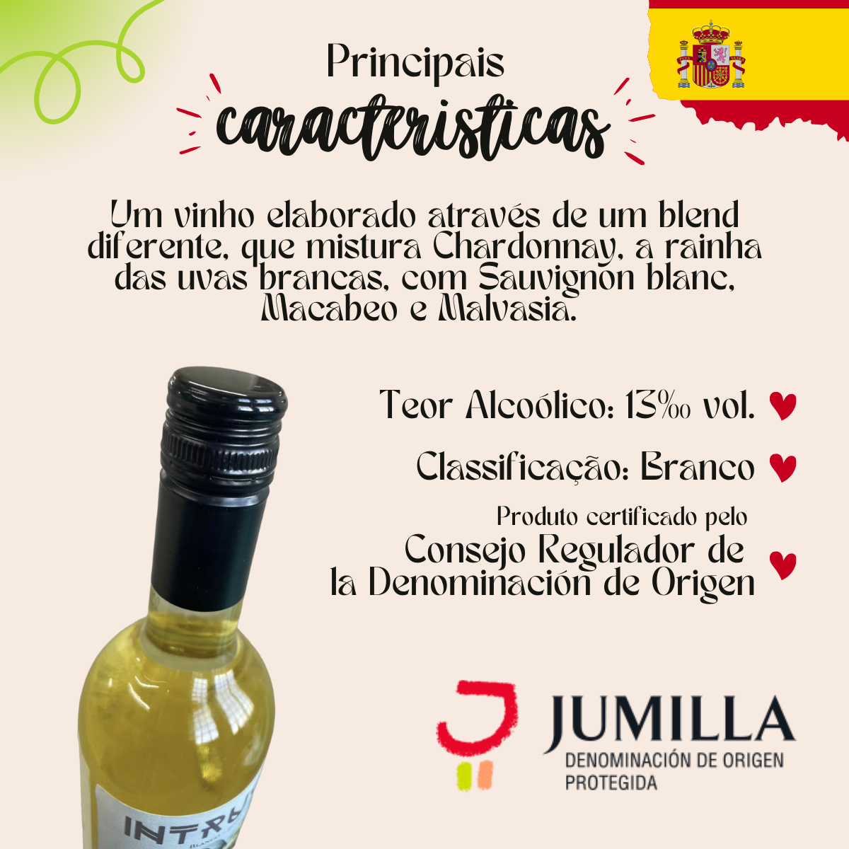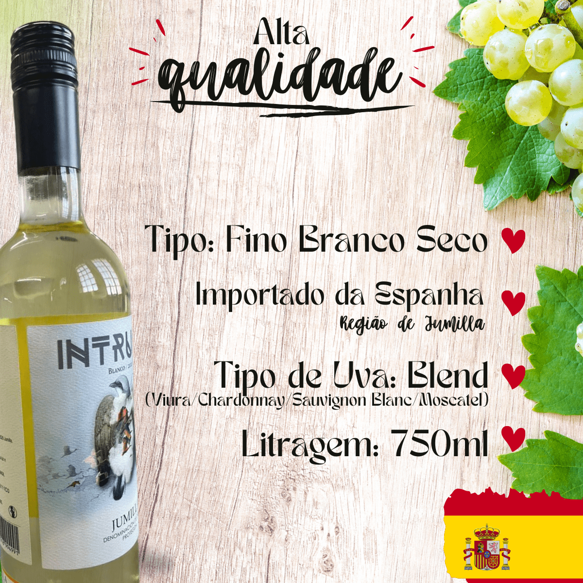 Marca INTRUSO Tipo de vinho – Branco Graduação alcoólica – 14,2 % Volume da unidade – 750 mL NCM -2204.21.00